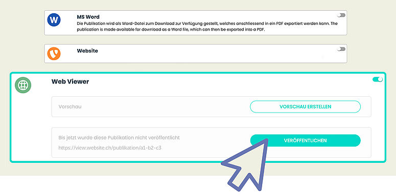 Zu den bestehenden beiden Publikationskanälen «MS-Word» und «Website» gibt es auch neu die Möglichkeit vom «Web Viewer».